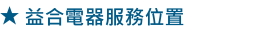 益合電器地址:桃園市中壢區中正路1043號之1 益合電器連絡電話 : Tel: 03-2716776 Fax: 03-4913712 客服信箱 : esdnesdn@gmail.com
